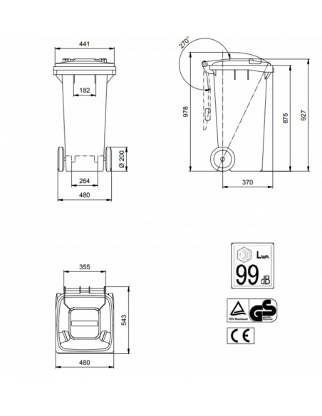 - pojemniki odpowiadają normom EU i posiadają stosowne atesty dotyczące ochrony przed hałasem oraz znak CE (poziom akustyczny)