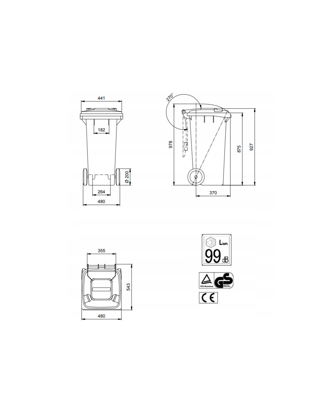- pojemniki odpowiadają normom EU i posiadają stosowne atesty dotyczące ochrony przed hałasem oraz znak CE (poziom akustyczny)