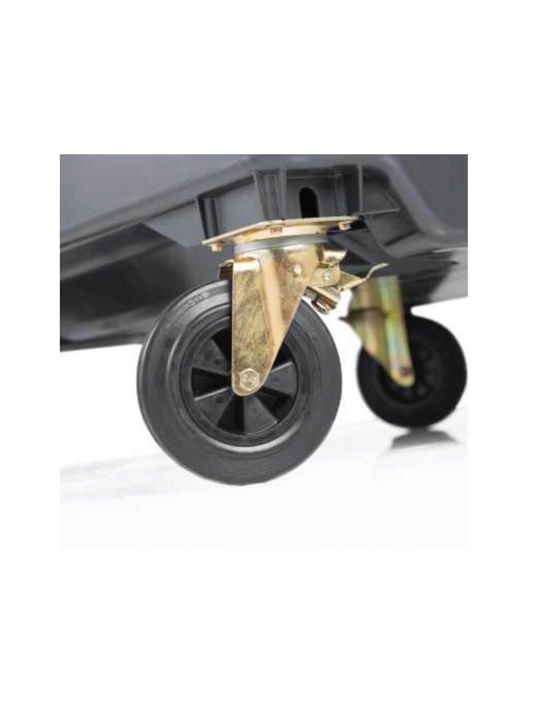 - Układ jezdny z pełnymi gumowymi oponami Ø 200 mm
